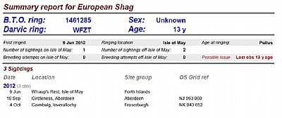 We contacted the Orkney Bird Recorder, Steve Dudley, who sent a very helpful response suggesting that, depending on the internal diameter of the ring, it could be from a shag – it looked a bit small for a goose….