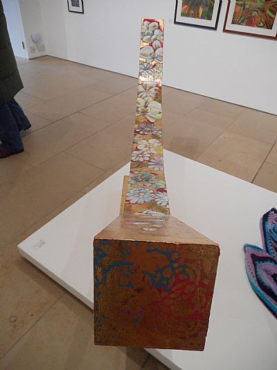 Up the stairs and clockwise round the room, I like the freshness of Linda Trickett’s ‘Neorographic Art – Koi Carp’……
