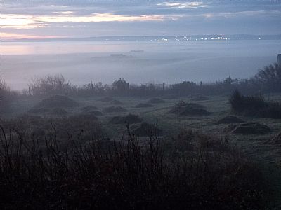 Mist over the garden - a feeling that we might see folk from other times, walking...