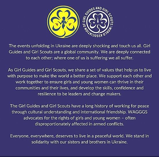 Just before the Second World War, an Internationl meeting of Girl Guides and Girl Scouts, aware that War was imminent, agreed that the Movement was above that; that their friendship and sisterhood would continue.