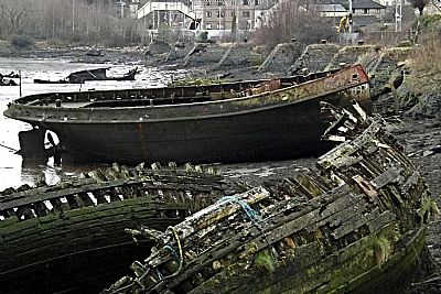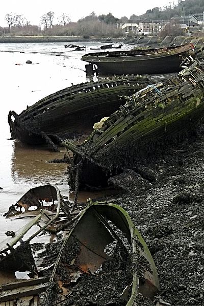 Visit this harbour at high tide and you would think it just another small harbour although you will soon notice a number of partially sunken vessels poking their superstructure forlornly out of the water. Visit it at low tide and the scene is even more forlorn. A vast sticky expanse of mud greets you. And those vessels can be seen at odd angles in that mud - picturesque though in a strange way. Do not attempt to approach them. That mud sucks you in. It is a sad scene, but the commercial potential of reclaiming the harbour is simply currently not viable.