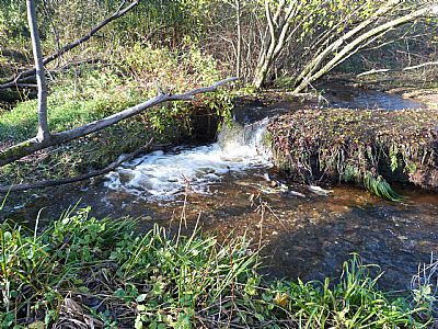The burn that served the Millburn Works just west of Renton Main Road comes down from Poachy Glen. Its route of flow is a little altered by debris, fallen trees and reclearing. Here you can see the point at which two flows reconverge.