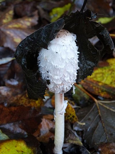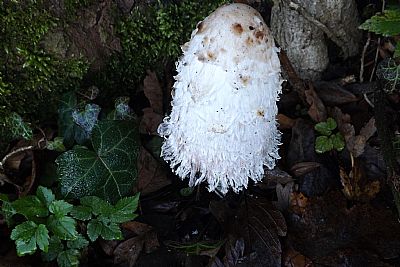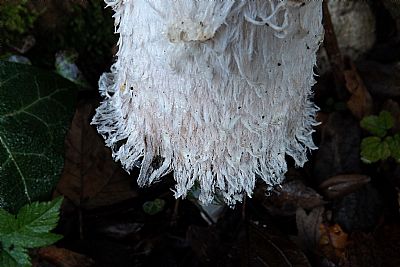 Totally Wild UK describes it as White cap with white fibrils, starting off egg shaped, becoming long bell shaped. The cap can reach upto 7cm, at maturity the cap will start to deliquescing (liquifying into its spore mass) Some times gets called a lawyers wig because of the curled fibrils.