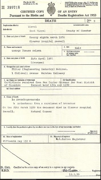 George died on 28th March 1970