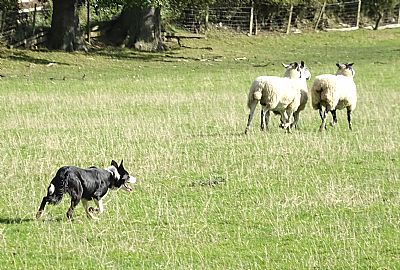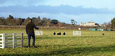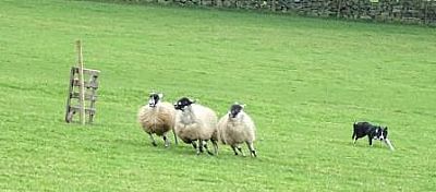 A bit of a cross country course, an interesting challenge for dog and handler. High winds made some problems but the sheep were good.