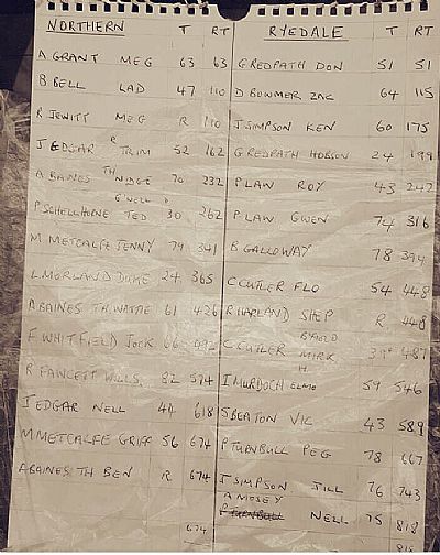 Northern led with 827, ( trophy not on field for awarding but will be soon) Ryedale 229