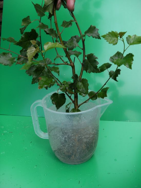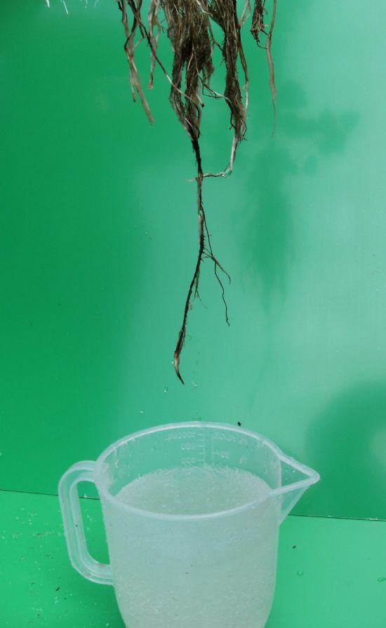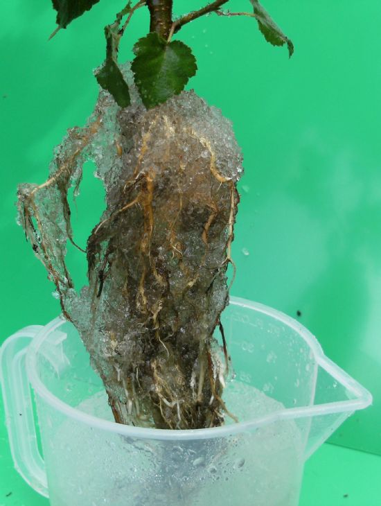 After about 3 or 4 minutes dip the bare roots of a plant into the gel. If the gel is too thick and too much adheres to the roots, add another 250ml of water, stir, wait another 3 or 4 minutes and try again, adding more water if necessary until the desired consistency is achieved.