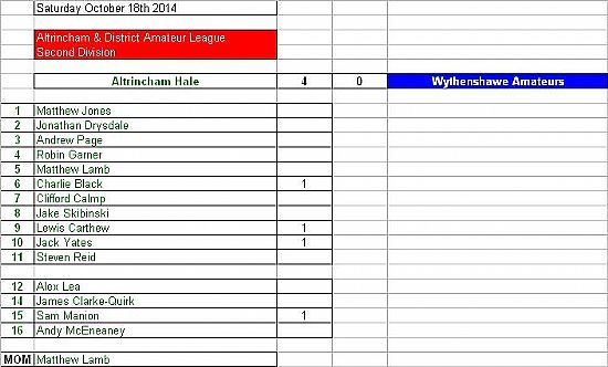 Match Card v Wythenshaew Amateurs