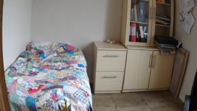 Currently being used by the as both single bedroom and office, but could fit a small double bed, it has as had built in cupboards that hind away the office space.
