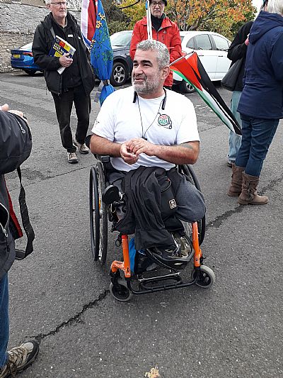 Sha setting out from Coldstream, welcomed by a good crowd who wished him well for the next stage of his journey - Alnwick.