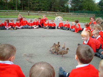 Everyone enjoys the visits. One of our ducks called Clare, now three years old, recognises school adventure preparations and despite the fact that she is too grown up for school (in duck years she would have left by now) comes running and will not leave us alone or shut up until we submit and get her a transporter box so she can come along.