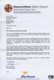We have just received a nice letter of thanks from Mike Keenlyside of Chester-le-Street District Council.