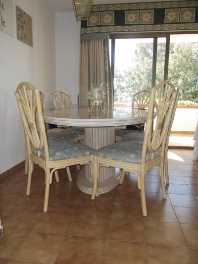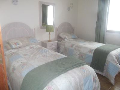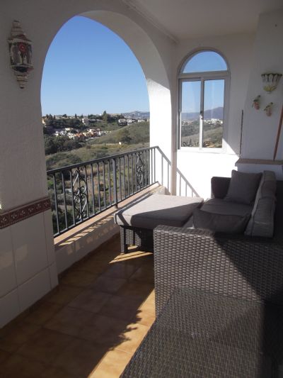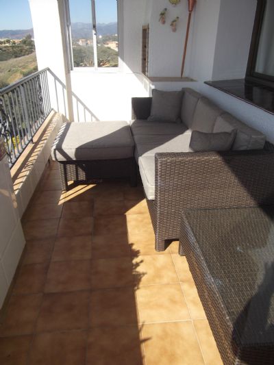 Bedroom 2 has a shower room next to it and also plenty of wardrobe space. All bedding and towels are provided. There is also a put you up bed which will fit in either room so the apartment sleeps 5 with ease. In the lounge there is a 3 seater settee and 2 chairs plus TV with freeview and a DVD player. The dining area has a large table and seats 6. The kitchen is fitted with a gas hob, electric oven, fridge/freezer, microwave and washing machine. There is a large balcony off the lounge with patio furniture which has spectacular views over Fuengirola and the countryside, a wonderful place for lunch or a glass of wine at night. There is a communal pool set within beautiful gardens and with breathtaking views over Mijas. Although there is a bus a couple of times a day to Fuengirola (in summer) and taxes are fairly cheap, to get the maximum out of the holiday it is probably better to hire a car as shops, resturants etc. are more driving distance not walking distance.