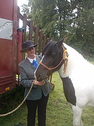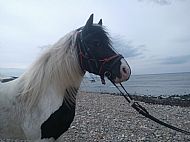 Candy is 6 years old, a dale x, 13.2hh piebald cob (black and white)