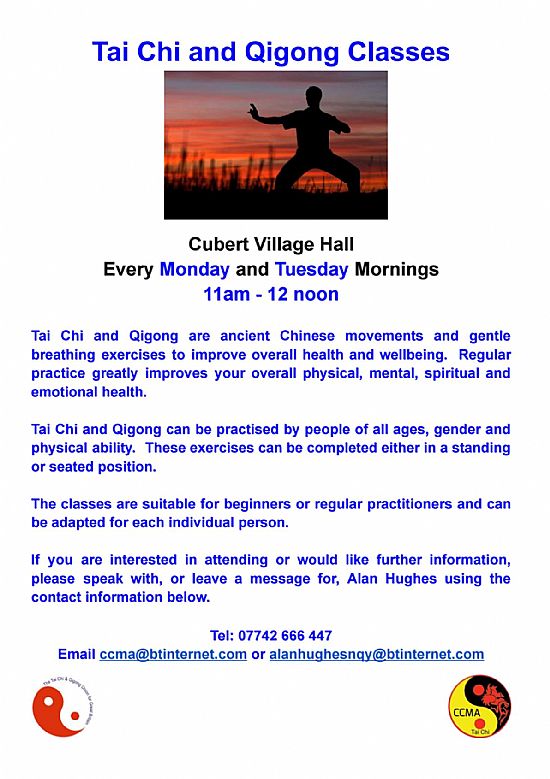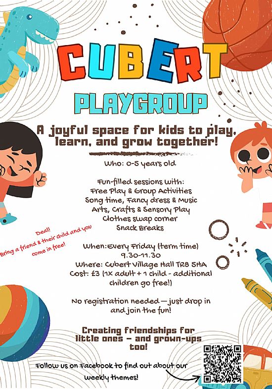 There is a wide variety of activities to enjoy at Cubert Village Hall including: Pilates; Yoga; Exercise; Barre and Meditation; Tai Chi; Karate; Tots Football Fun; Short Mat Bowls and a Friday morning Toddlers Group. Pickleball will start in November 2025.