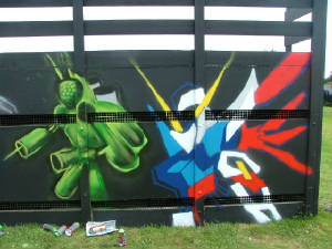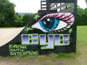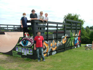 Young people from Evanton have completed a vivid graffiti mural on the Evanton Youth Enterprise (EYE) half-pipe skateboard ramp in Teandallon Park. A core team of five teenagers worked over four days with artist Marc Delaye, who has led similar projects throughout the Highlands, ably assisted on this project by Highland Council youth workers Eileen and Jennifer.