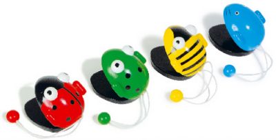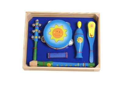 Drum KitGreat small drum kit for young children | Marching drumGreat drum for using on the floor or can be hung round the childs neck to play on the move | | Music set in wooden boxComplete set of instruments for children, contains a recorder, tambourine, bell stick, clacker and mouth organ Size approx 38cm x 29cm | Childrens electric guitarBattery powered guitar with volume control, can also be used with a external amplifier (not supplied) comes in a nylon carry bag with carry handles a a strap size approx 75cm x 23cm | | Xylophone with 8 tonesBrightly coloured xylophone with 8 tones, comes with two beaters Size approx 33cm x 23cm | Wooden bell sticksWooden bell stick brightly coloured and lots of noise! One supplied, colours may vary Size approx 20cm | | Childrens accordionSmall childrens accordion with great sound size approx 34cm | Animal catanetsFour great designs, ladybird, bee, frog and mouse. One supplied Size approx 5cm | | Ladybird tambourineBeautiful tambourine with ladybird design Size approx 18cm Have a look at the ladybird maracas they go great with this item | Ladybird maracasWooden maracas with ladybird design Size approx 23cm Two supplied | | Pull along frog xylophonePull along frog design xylophone with 5 tones, comes with one beater. Size approx 19cm x 20cm | Coloured mouth organColoured metal mouth organ Size approx 11cm x 3cm One supplied | | | | |