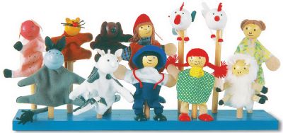Wild animals finger puppetsElephant, lion, tiger, horse, girrafe,zebra and koala finger puppets One supplied Size approx 8cm x 9cm | Finger puppet theatreTheatre for your finger puppets Size approx 37cm x 26cm | | Stand for finger puppetsKeep your finger puppets tidy by keeping them together on the stand. Space for 12 finger puppets Finger puppets sold separately. This item is not held in stock and has to be ordered from our supplier Colours may vary from the picture | | | | | | | | |