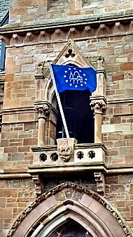 That photograph near the top of this page is of the Doors Open Day flag flying on the West Dunbartonshire Council building in Church Street, Dumbarton. It is actually the logo of European Heritage Days under which Scotland hosts Doors Open Days. Similar events are held across Europe (and have inspired other countries too). As noted above, European Heritage Days are a combined initiative of the Council of Europe and the European Commission. This involves all 50 signatory states of the European Cultural Convention under the motto, Europe: a common heritage. The annual programme offers opportunities to visit buildings, monuments and sites, many of which are not normally accessible to the public. It aims to widen access and foster care for architectural and environmental heritage. These events are also known as Doors Open Days and Open Doors Days in English-speaking countries.