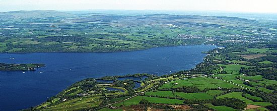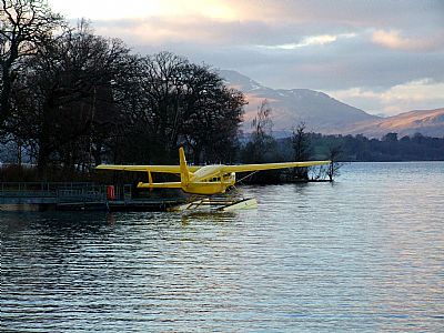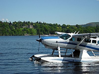 If you wish to see Loch Lomond from the air, as well as much of the sea lochs and isles from here westwards, this seaplane offers you an exciting flight. This takes off from Cameron House. In the distance you can see Balloch Castle. (This company has ceased operating).