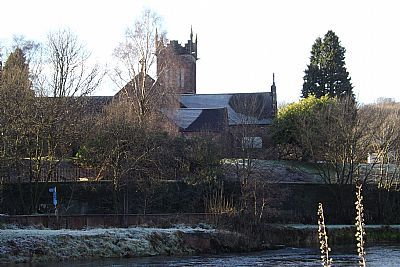 A view from the walk looking across the Leven at RENTON TRINITY PARISH CHURCH