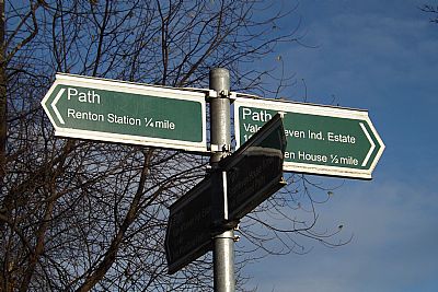 Along the route where it is alongside the River Leven you can look across at some of Renton's historical buldings such as the Trinity Parish Church, the Smollett Monument and a remnant of the Cordale Print works, a stocky brick tower alongside modern walling on a sweep of the river. If starting at Strathleven Park residential area, walk from Strathleven Drive to the footpath at the south west corner, down the back of Strathleven House and then follow Levenside Road to the signage that directs you through the woods towards the river.
