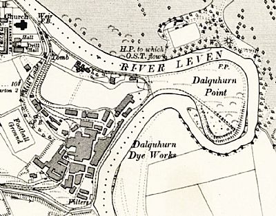 When the new housing was developed, the site was thoroughly cleared, stablised and raised both to avoid any residual contamination from the dye works and to avoid flooding. There is still an unused area that will one day be built on, but beyond it is what is shown on the old map as Dalquhurn Point.