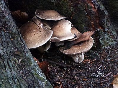 These were found growing within a hollow of a living tree in the grounds of Strathleven House. Just beyond them was a line of wood mushrooms (the extent of the mycelium).