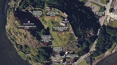 This is how it appears for Dumbarton Castle. Zoom in to see the small red bench mark symbols. Each one has a brief description of its location.