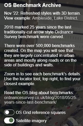 INTERACTIVE MAPS - Bench marks - https://interactivemaps.uk/os-benchmark-archive/#16.23/55.944826/-4.564839 This reference centres on the Glasgow Road / Church Street roundabout in Dumbarton. Re- centre it your your own needs, using the zoom.