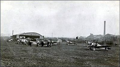 None of this clarifies the location of the airfield. Planes being slower then could take off and land on grass and strips relatively shorter than we require today, but some of the planes were large. The Threadinburgh website has an illustration of one with wheel taller than the men standing alongside it.