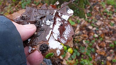 Wiki tells us that it is a species of non-parasitic plasmodial slime mould, and a member of the class Myxomycetes. It is commonly known as the tapioca slime mold because of its peculiar pure white tapioca pudding-like appearance. A common species with a worldwide distribution, particularly in North America and Europe. It is often found on bark after heavy rain or excessive watering. Their spores are produced on or in aerial sponangia and are spread by wind and some beetle species.