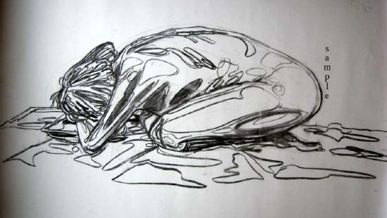 Girl in the pond pencil on cartridge paper .You can order a limited signed print of this drawing for £65.00. Alternatively you can order a hand drawn signed replica for £175.00. Please contact me to discuss further. | Kneeling nude - charcoal& chalk on paper 61cm x 41 cmYou can purchase this original signed drawing in charcoal & chalk on quality cartridge paper for £175.00. Please contact me to discuss further. |