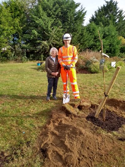 Alison Hall of Rotary and AMEY's Jonathan Davies-Coleman planting one of the Amelanchiers Greens Nursery supplied the trees which went in just before storm AMEY struck. Thankfully they had all been well heeled in and staked, so have survived and should offer lovely spring blossom in the coming years. | ![]() ![]() ![]() |