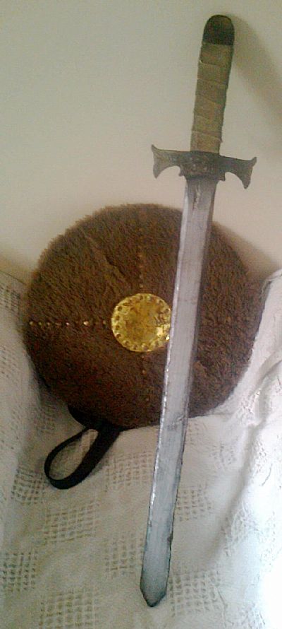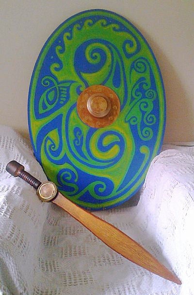 Plywood Pictish Shield and acrylic Carp-Tongue sword, Bronze Age
