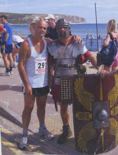 At the start of August 2006 I took part in the Swanage half marathon to road test our costume on an official half marathon course (just over 13 miles over the testing Purbeck terrain - a round trip fom Swanage to Corfe Castle and back again...