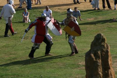 So many people had spotted the two Joe's (Ardern and Roberts) having a practice fight session away from the main arena, that the crowds were beginning to think we were the main event of the day! (Our style is admittedly very energetic, however we were very pleased with the encouragment we got from some spectators, who thought we were outdoing the official acts!) In the end we were simply placed as the culminating act in the Stone Circle itself, where we proceeded to put on a 10 minute display that the officials afterwards told us was "the best of the lot!"
