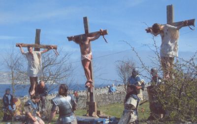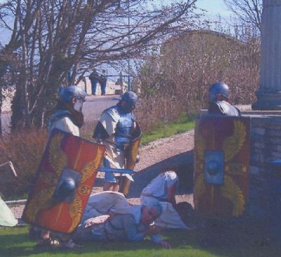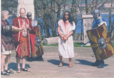 Definitely a high profile day out, the Good Friday parade in Swanage required some soldiers to create its dramatic depiction of the first Good Friday. Though legionaries in 1st century Palestine would more likely have been wearing bronze, leather, with not so much iron as we seem to be, the fact that our production was to be in the UK simply meant that it would be more easily recognisable, almost on a historically cultural level, to depict soldiers more like those who would have been involved in the 43AD invasion of these British Isles.