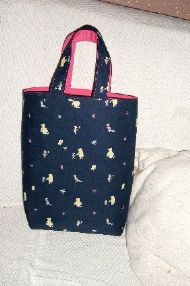"Whinnie the Pooh & Piglet" shopping bag, navy with a pink lining, waterproof, scotchgaurd protected.