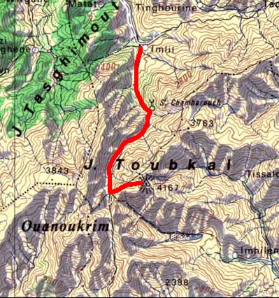Day 2: Drive from Marrakech to Imil 1740m (1.5 hours), trek Imil to Refuge Nelter 3200m (6 hours trekking), gite, breakfast, lunch & dinner included