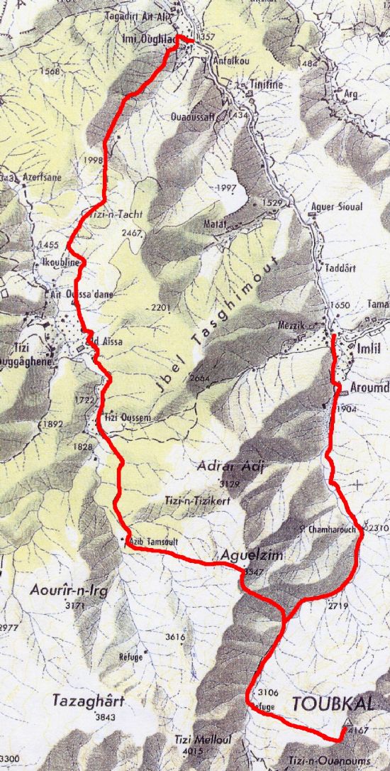 The Winter Toubkal trek, Morocco is a trek accommodated in basic dormitories and starts in Im Ighoulad. The trek follows the passes on the western side of Toubkal taking you away from the more popular routes. You will trek for 4 days through many interesting villages and different trekking terrains. This trek is strenuous and you will move from gite to gite each day but you will be rewarded with many fine view points of the Atlas mountains. Your trek will finish in Imil after reaching the summit of Jebel Toubkal 4167m. We return to Marrakech where you can visit the De Jemma el Fna and explore the medina and its many souqs and palaces.