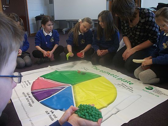 Dh'obraich sinn comhla ri Wendy a' taghadh biadh fallain. Feumaidh sinn coig sa latha ithe!
