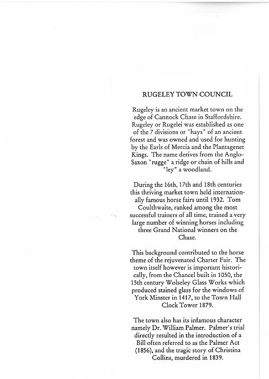 From 1980-1982 the Rugeley Festival Week was run by the Rugeley Chamber of Commerce and for the next 10 years the Rugeley festival was organised by an Independent Committee.