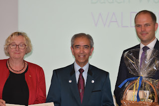 Freiburger author, lecturer and Männergesangverein singer Satis Shroff was awarded the Heimatmedaille Baden-Württemberg am 7.9.2018 in Waldkirch by the Minister for Science Frau Theresia Bauer MdL.