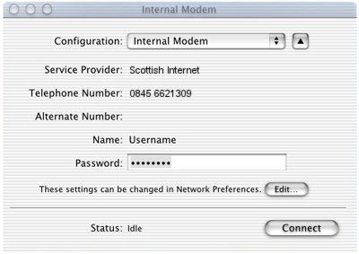 Your completed Internet Connect Application should appear as below, MacOS X is now ready to connect: