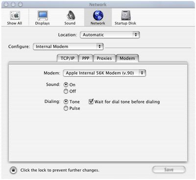 The Modem options should look like this: