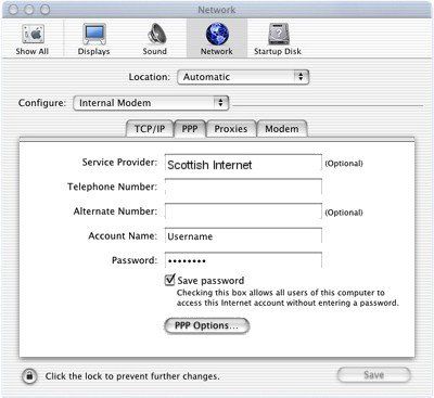 - Save Password should be checked, unless you prefer to type in your password each time you connect.