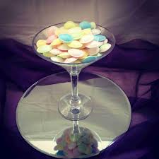 Our glassware consists of the 'fish bowl' look or our most popular design 'martini glass' filled with sweets situated on a mirror plate. The sweets can range from having the same sweets or colour coded in every glass, on each table or can have a variety throughout each table. These elegant designs really do give an outstanding look to your event.