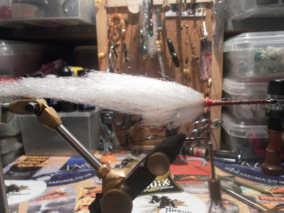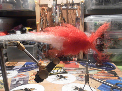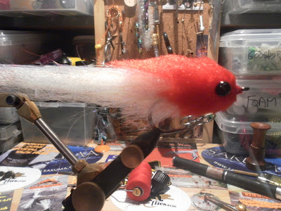 this fly works the same as a jerkbait give it a short tug and it will glide from side to side it uses big hooks and a lot of material although you can cast it on a 10wgt without a problem , the fly can be tied as big or as small as you like a deadly pattern for the pike or muskie angler