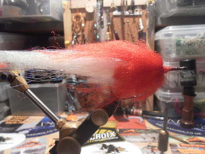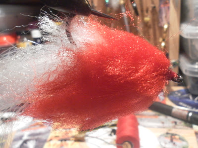 21- continue trimming around the head till you get the shape you want , I've opted for a longer red back section but you can trim this of if you want the top a block colour without bleeding into the back colour